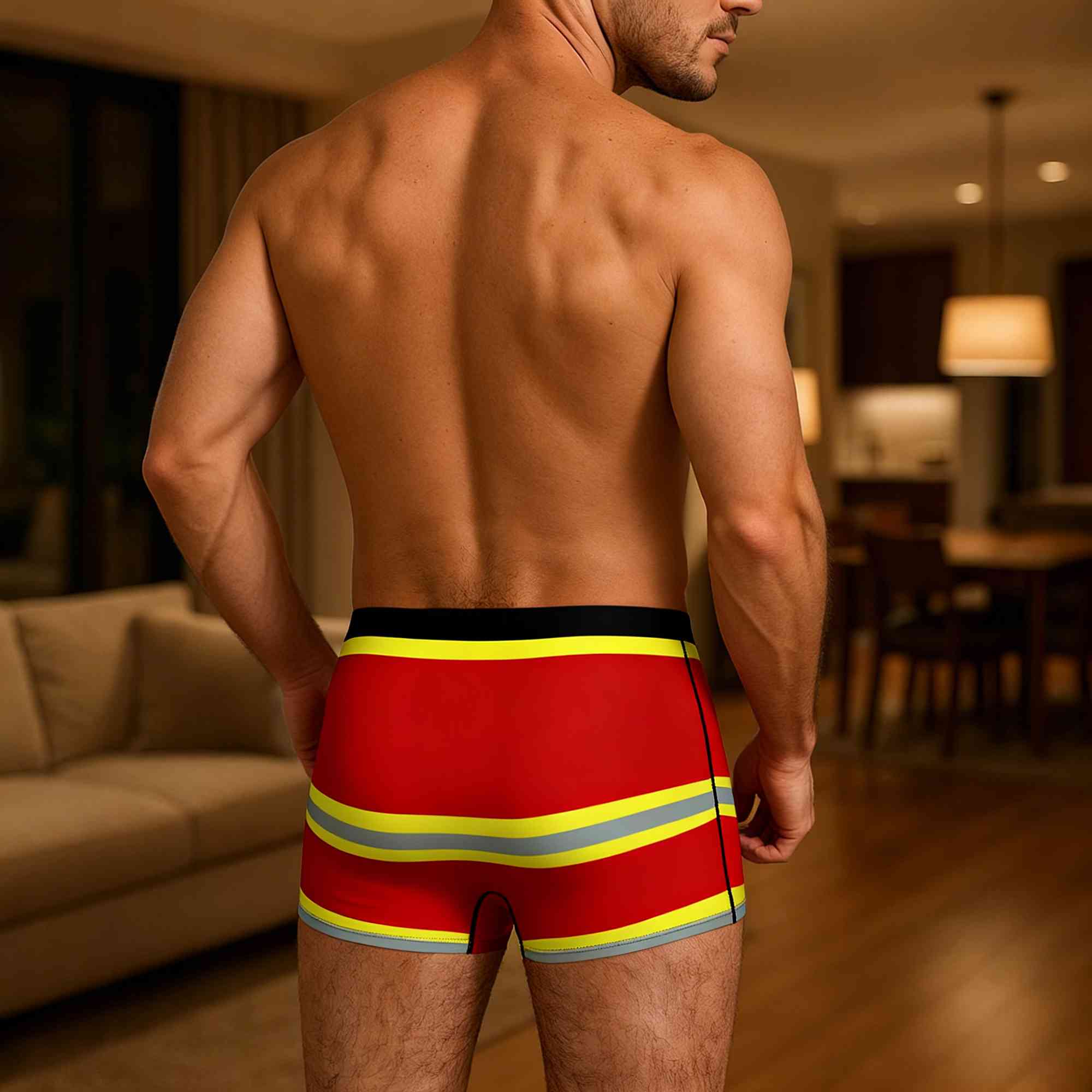 Fire Hose Fun Design - These boxer briefs feature a lively fire-hose illustration that adds humor and personality to his underwear drawer. The bright, cheeky artwork brings a fun twist while still feeling stylish and lighthearted.